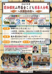 「第19回 関西アマチュア囲碁団体戦」 大会詳細・申込はこちらより 2025年8月24日(日)に「第18回関西アマチュア囲碁団体戦」を開催します。 当大会は3人1チームで出場する大会ですので、ご友人やご家族などでチームを […]