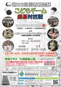 令和8年4月26日(日)に大和ハウス大阪本社ビル2階にて「第22回関西棋院杯こどもチーム対抗戦」を開催致します! 本大会は中学生以下の子どもたちが対象の「3人1チーム」になって出場するチーム対抗囲碁大会です […]