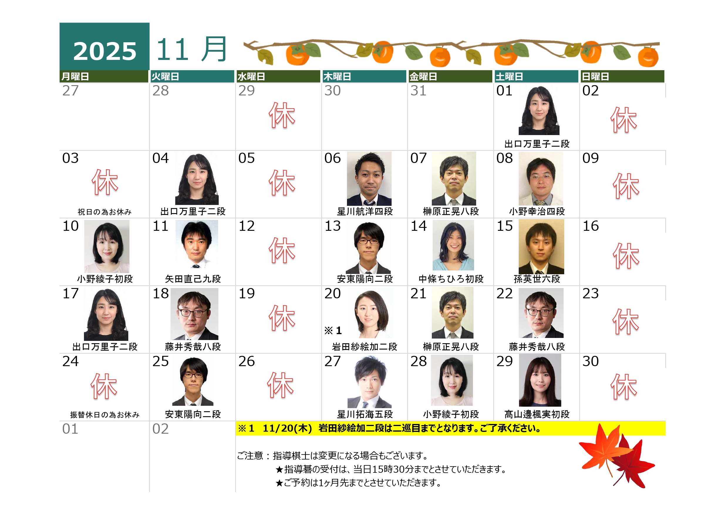 - 指導棋士は手合等の関係で変更になる場合もございます。
